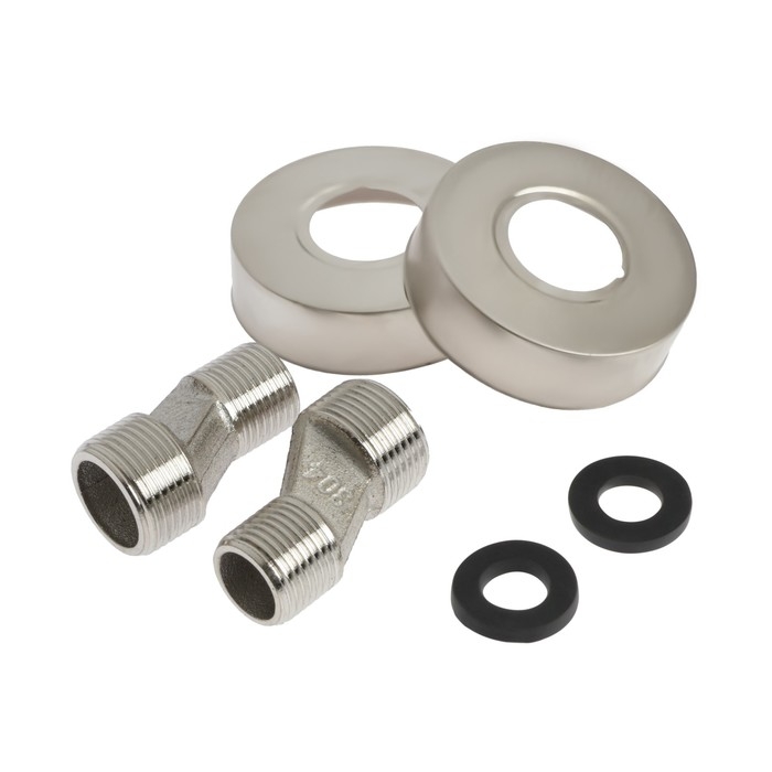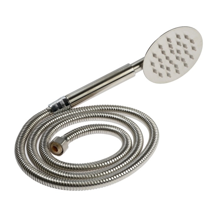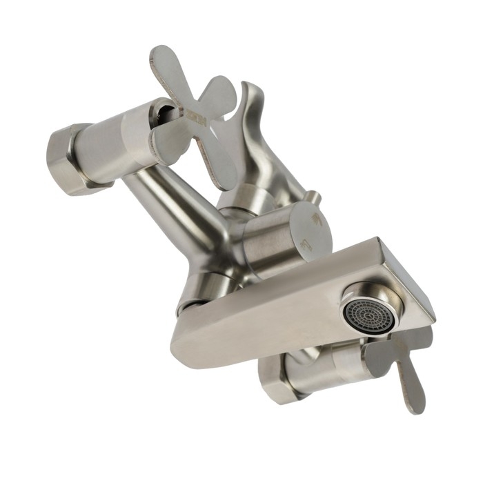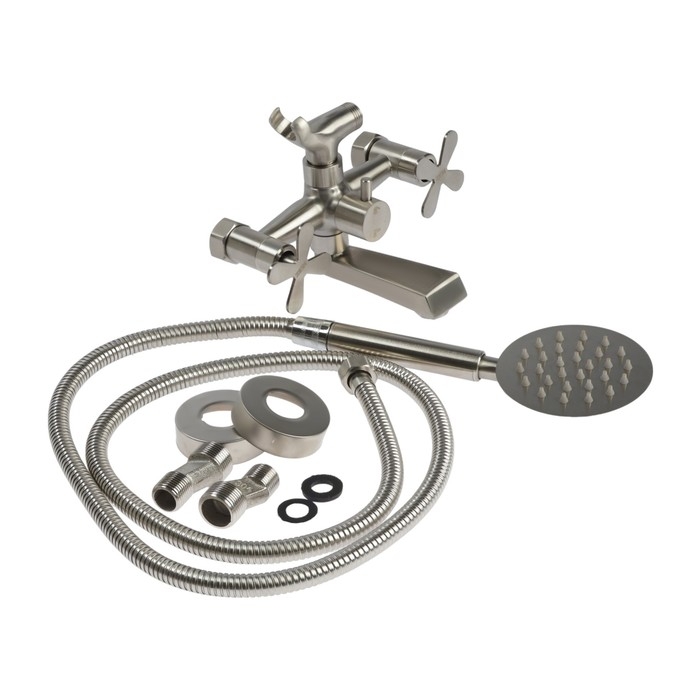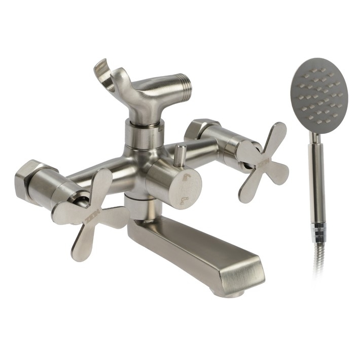 Смеситель для ванны ZEIN Z3732, двухвентильный, излив 10 см, лейка, шланг, сатин
