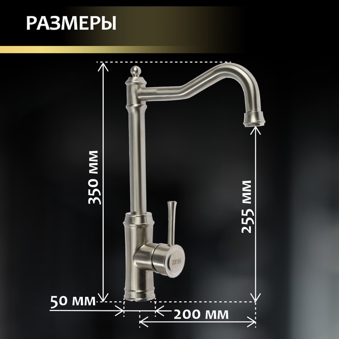 Смеситель для кухни ZEIN Z3736, однорычажный, высота излива 26 см, сатин