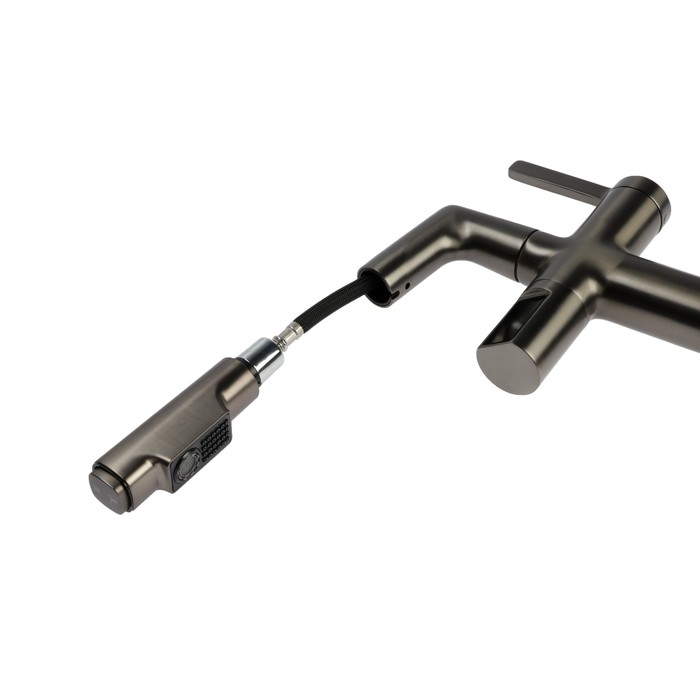 Вытяжной излив добавит функциональности смесителю - можно вымыть объемную посуду, дотянуться до труднодоступных мест и любого содержимого мойки.