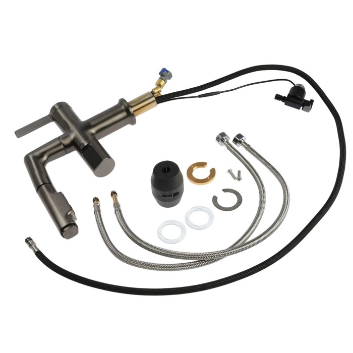 Смеситель для кухни ZEIN Z5972, с выходом для питьевой воды, гибкий излив, латунь, черный
