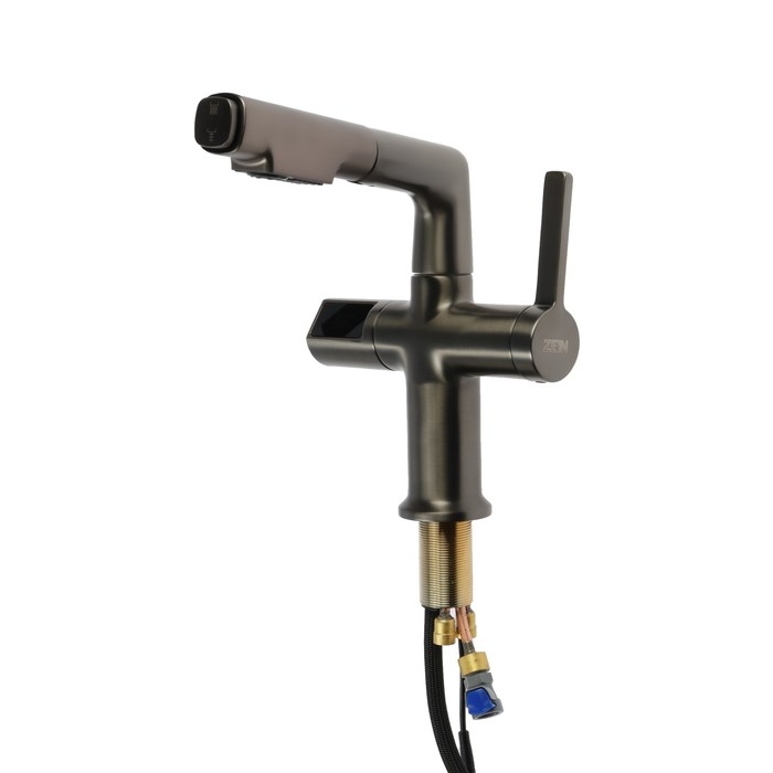 Смеситель для кухни ZEIN Z3782, экран температуры, вытяжной излив, высота 18-25 см, 2 режима