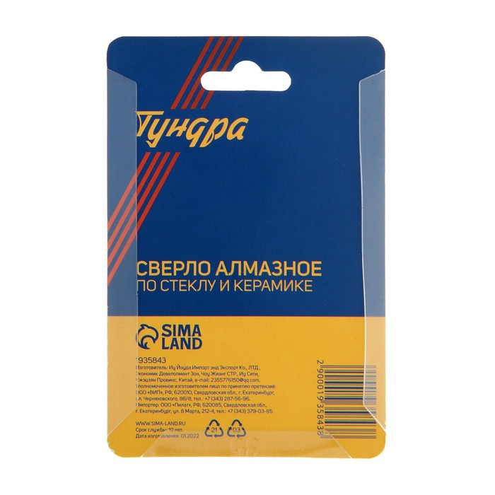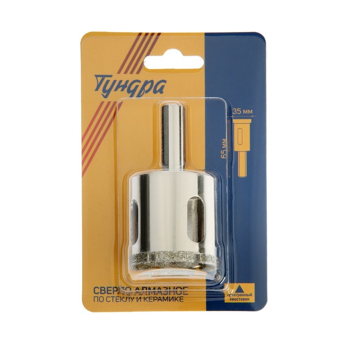 Сверло алмазное по стеклу и керамике ТУНДРА, трехгранный хвостовик, 35 х 65 мм