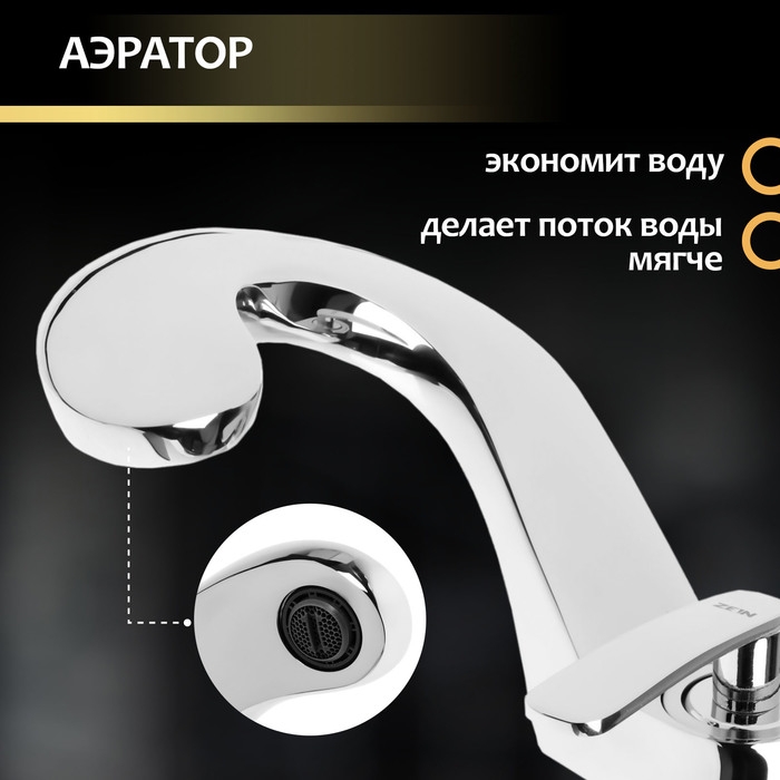 Смеситель для раковины ZEIN предназначен для установки на горизонтальной поверхности — кухонной мойке или столешнице.