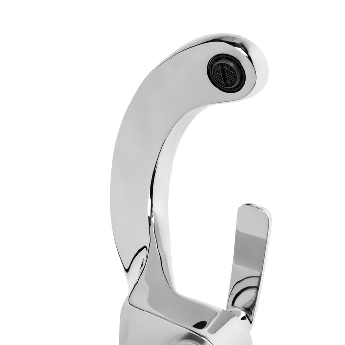 Смеситель выполнен в дизайнерском стиле с однорычажным управлением, что делает использование очень удобным.