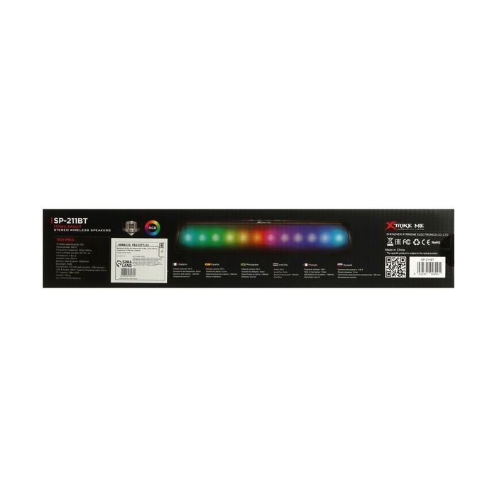 Беспроводная колонка Xtrike Me SP-211BT, 10 Вт, BT5.0, подсветка, 1200 мАч, чёрная