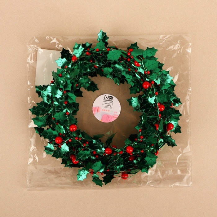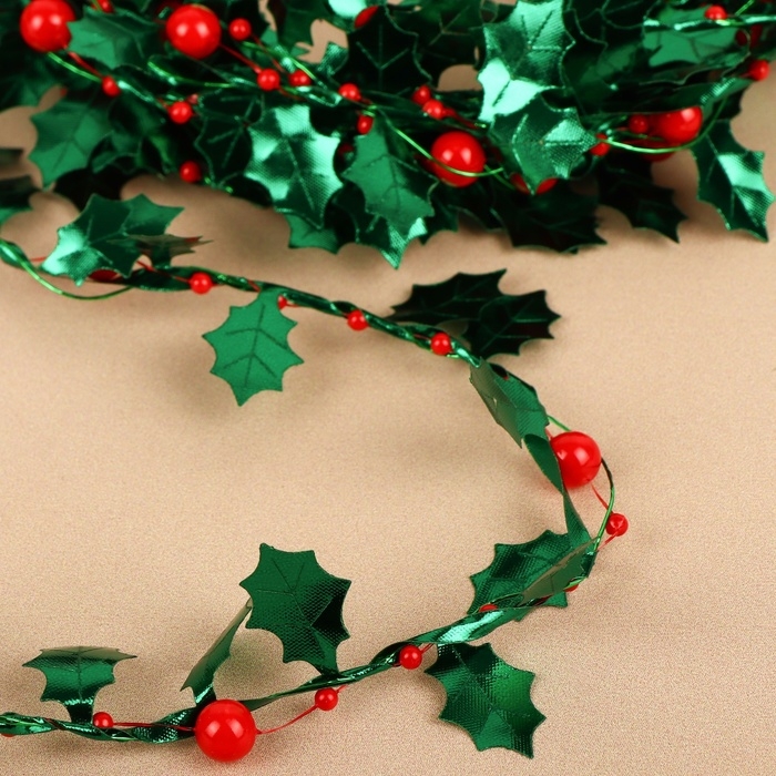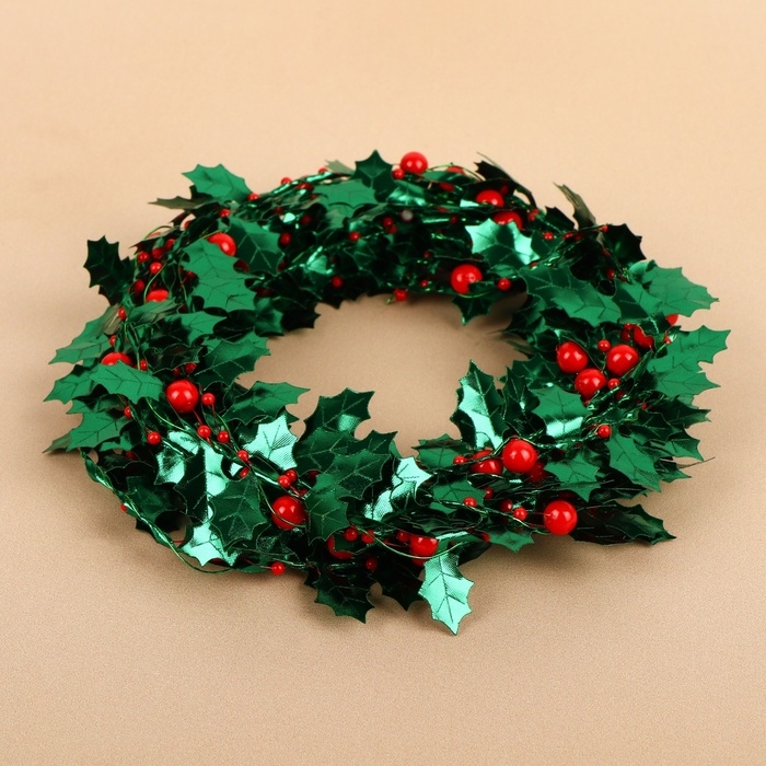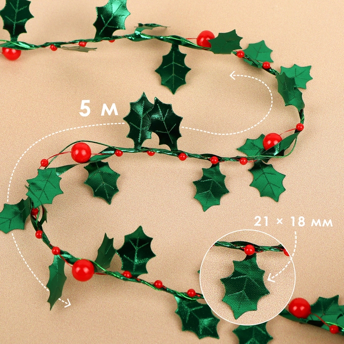 Листья на металлической проволоке, с бусинами, 21 × 18 мм, 5 м, цвет зелёный/красный