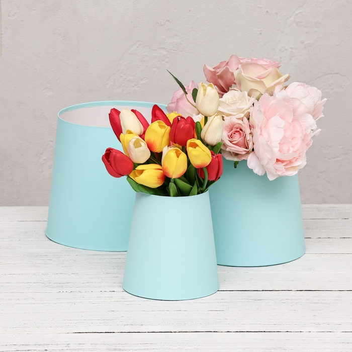 Выполненные из качественных и прочных материалов, коробки 3 в 1 в виде конусов прослужат вам долгое время и станут незаменимым помощником при подготовке подарков и букетов.