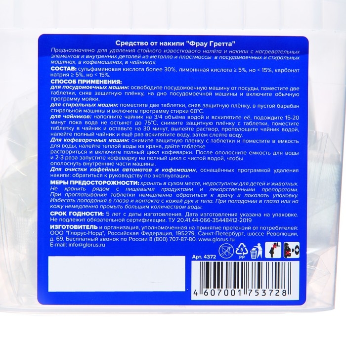 Таблетки для удаления накипи Frau Gretta в бытовой технике, 4 шт.