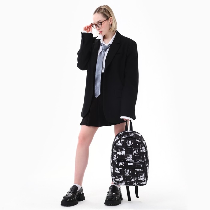 Рюкзак школьный текстильный «Аниме», 42х14х28 см, цвет чёрный