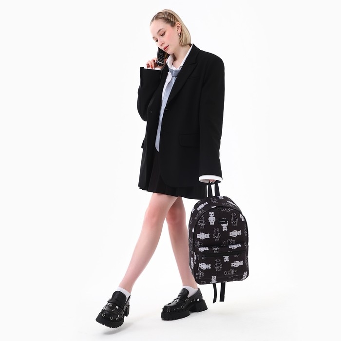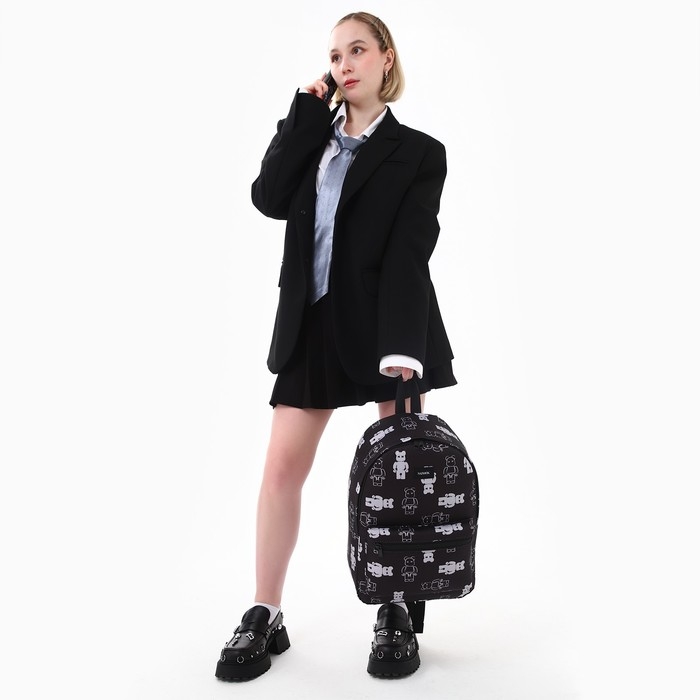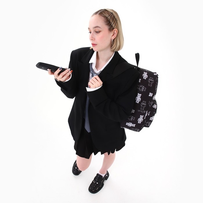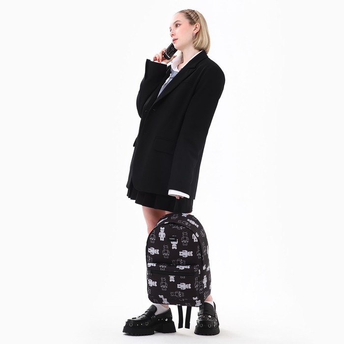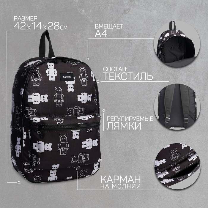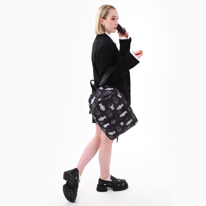 Рюкзак школьный текстильный Teddy, 42х14х28 см, цвет чёрный