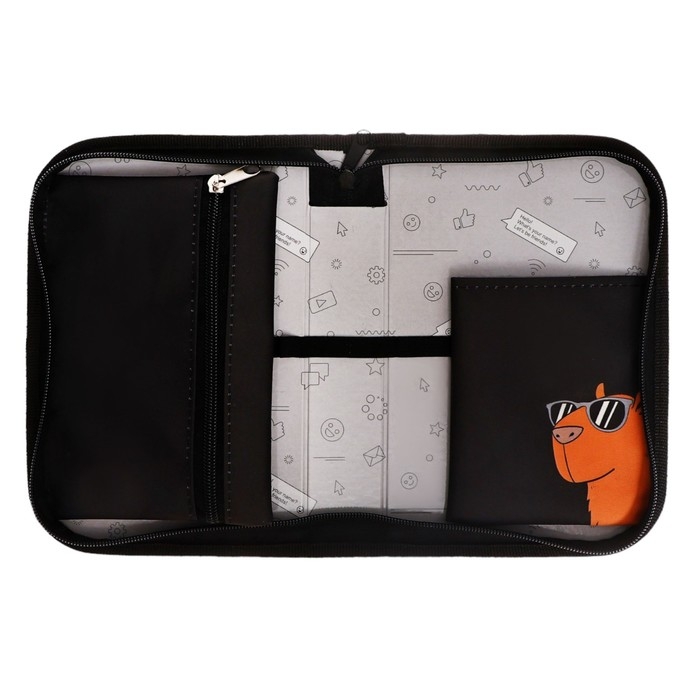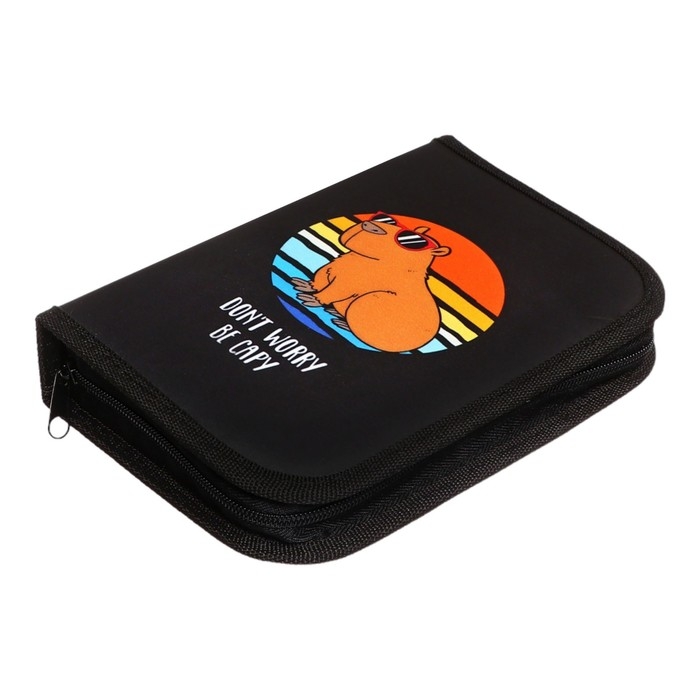 Пенал 1 секция 140 х 210 х 40 мм, откидной карман и косметичка, тканевый, Calligrata TOP Content "Хомячок"