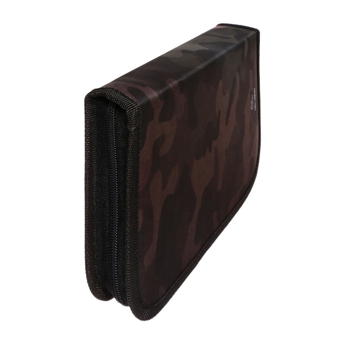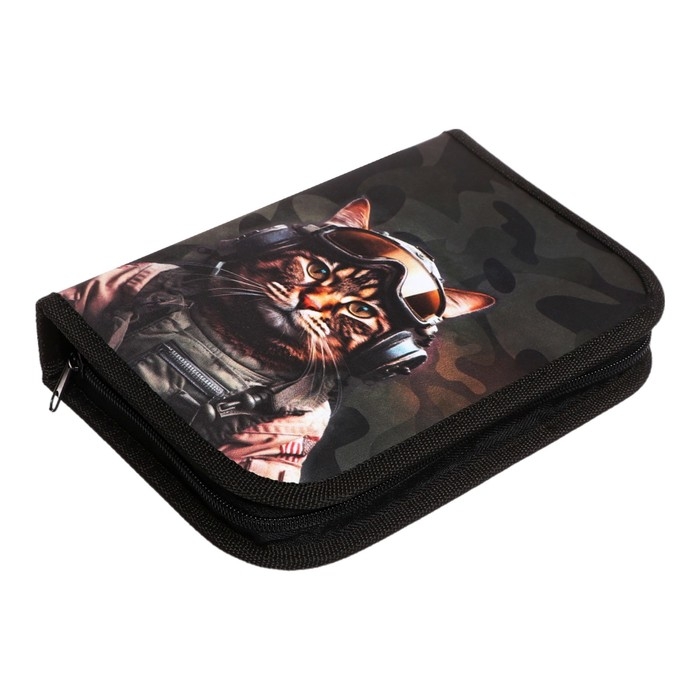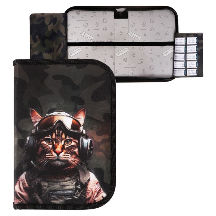 Пенал 1 секция 140 х 210 х 40 мм, откидной карман и косметичка, тканевый, Calligrata TOP Content "Кот камуфляж"