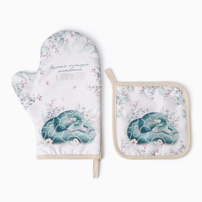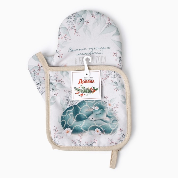 Набор кух. Доляна "Теплых мгновений": прихватка 17х17 см, варежка-прихватка 20х28 см, 35%хл, 1033020