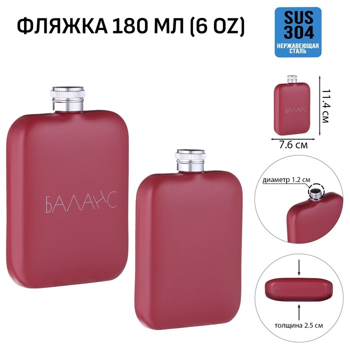 Фляжка для алкоголя "Баланс", нержавеющая сталь, подарочная, армейская, 180 мл, 6 oz