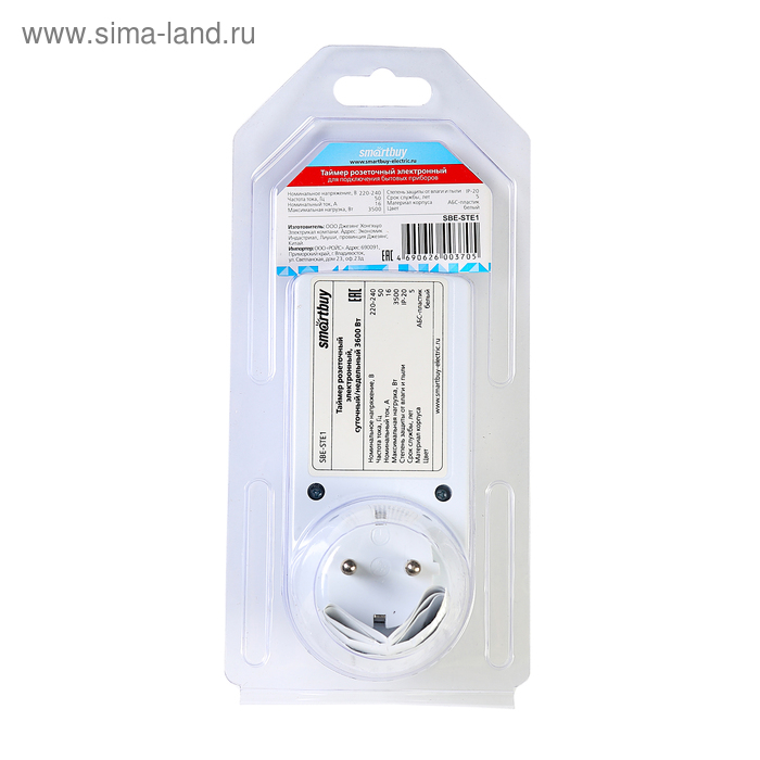 Таймер розеточный Smartbuy, электронный, 3500 Вт, недельный+суточный