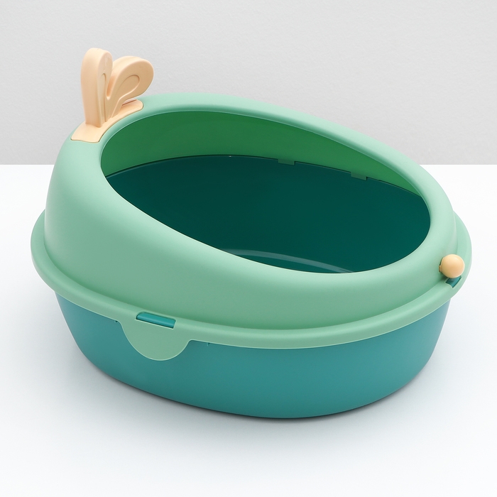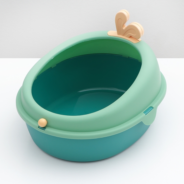 Эстетически приятный и функциональный туалет в зелёно-оранжевой цветовой гамме станет идеальным дополнением вашего интерьера. Его размеры (40 х 33,8 х 25,5 см) позволяют использовать его даже в ограниченном пространстве, обеспечивая питомцу комфортное место для своих нужд.