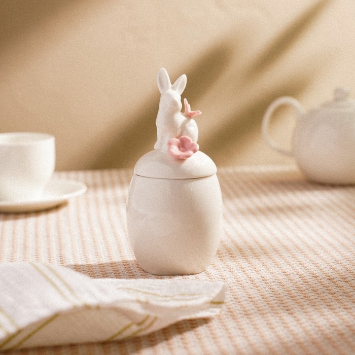 Банка для хранения сыпучих продуктов SL Home «Лесные кролики», 220 мл, 7,5×16 см, цвет белый