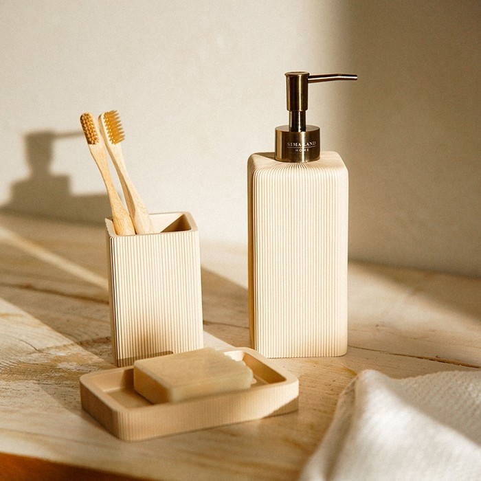 Набор выполнен из высококачественного полирезина и пластика, что обеспечивает долговечность и устойчивость к влаге. Однотонный дизайн в нежном бежевом цвете гармонично впишется в любой интерьер, придавая вашей ванной комнате современный и утончённый вид.