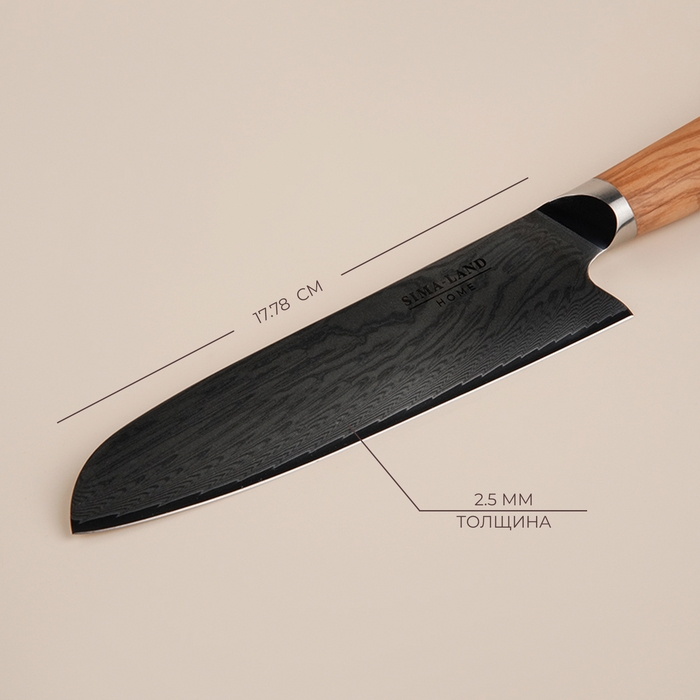 Нож кухонный SL Home «Оливия», сантоку, лезвие 17,78 см, дамасская сталь, цвет коричневый
