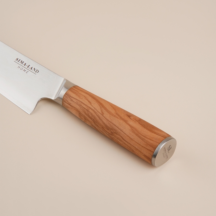 - Удобство использования: эргономичная деревянная ручка обеспечивает комфортное и безопасное удержание ножа, что важно при длительной работе на кухне.