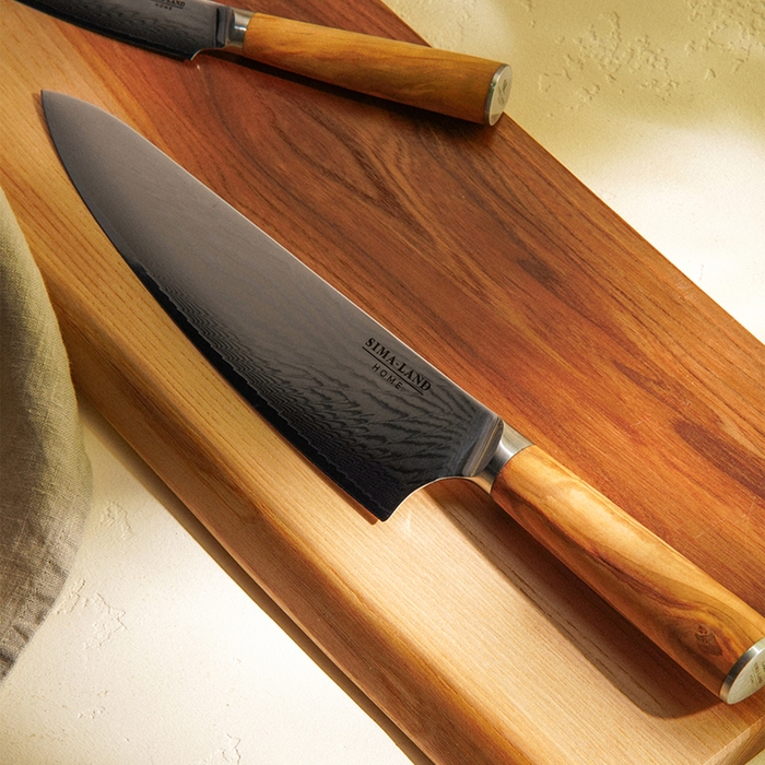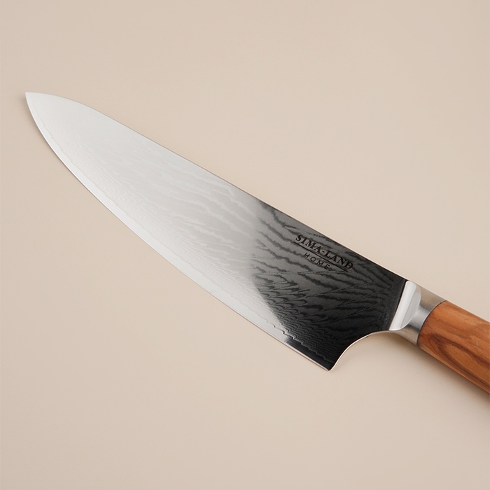 - Универсальность: этот шеф-нож подходит для нарезки, измельчения и разделки различных продуктов — от овощей до мяса.