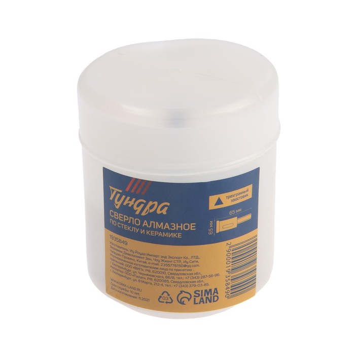 Сверло алмазное по стеклу и керамике ТУНДРА, трехгранный хвостовик, 65 х 65 мм