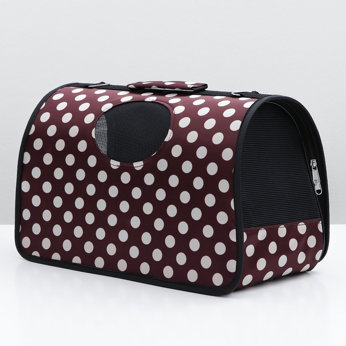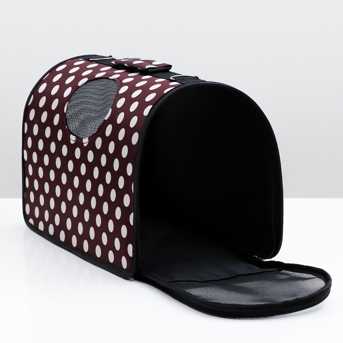 Сумка - переноска для животных "Горошек", коричневая, размер М, 40 х 21 х 27 см