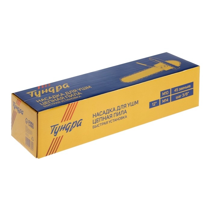 Насадка для УШМ ТУНДРА, цепная пила, быстрая установка, 12", 45 звеньев, шаг 3/8", M10, М14