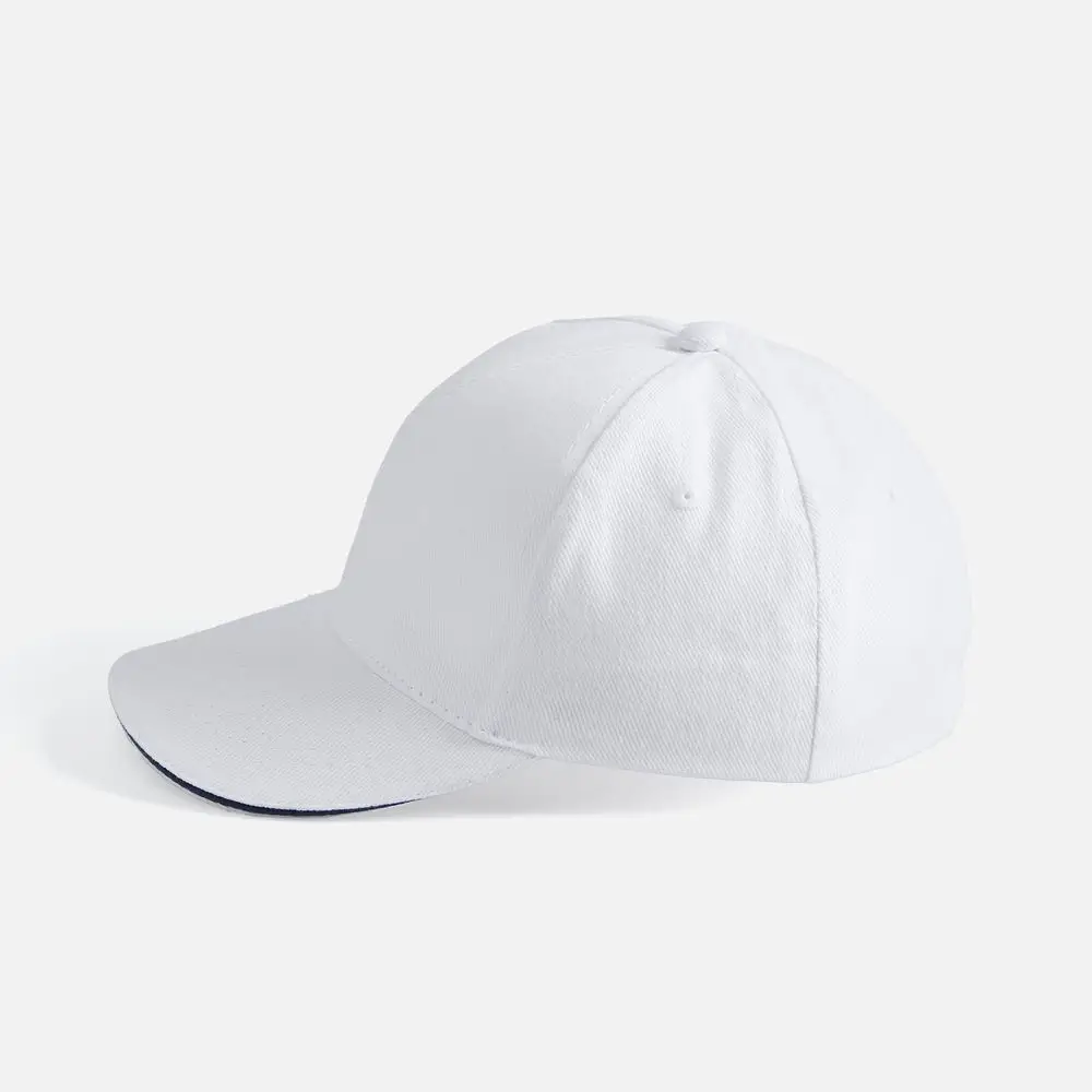 Модель бейсболки с 5-ю клиньями без лобового шва из плотного чесаного хлопка.