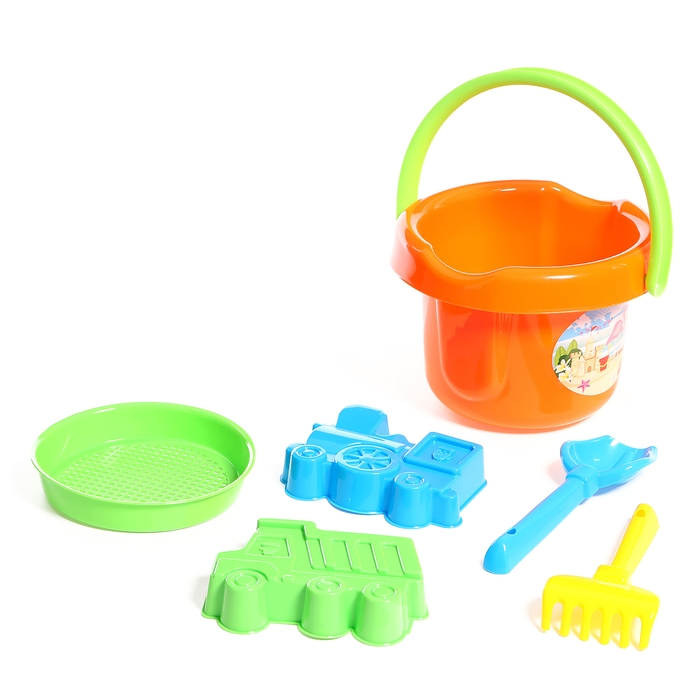 Песочный набор №155: ведро, ситечко-цветок, совок, грабельки, 2 формочки, лейка, цвета МИКС