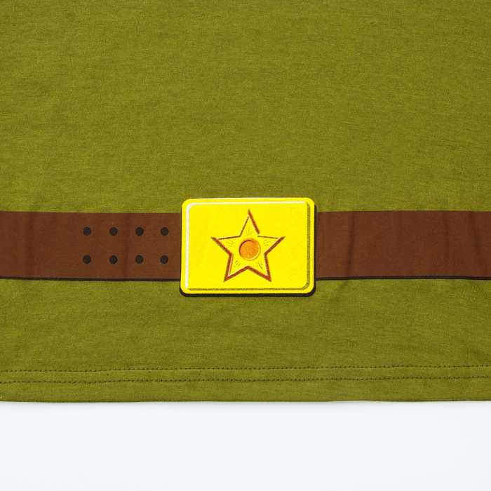 Карнавальный набор для юного солдата включает футболку и пилотку, которые подойдут для создания образа защитника на детских праздниках или тематических мероприятиях. Футболка изготовлена из 100% хлопка, что обеспечивает комфорт и безопасность при носке, а яркий принт добавляет изделию реалистичности.