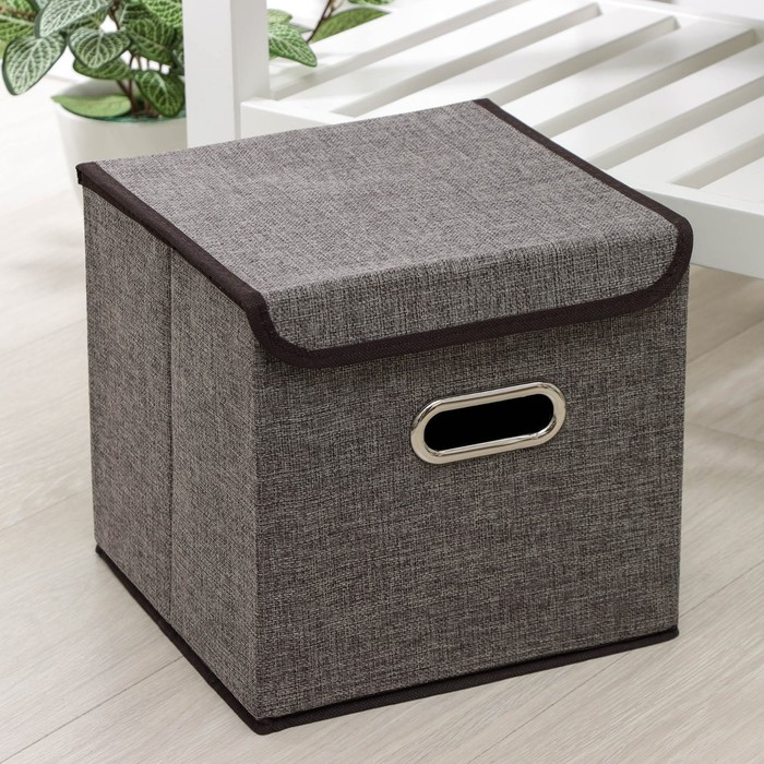 Короб стеллажный для хранения с крышкой «Офис», 25×25×25 см, цвет серый