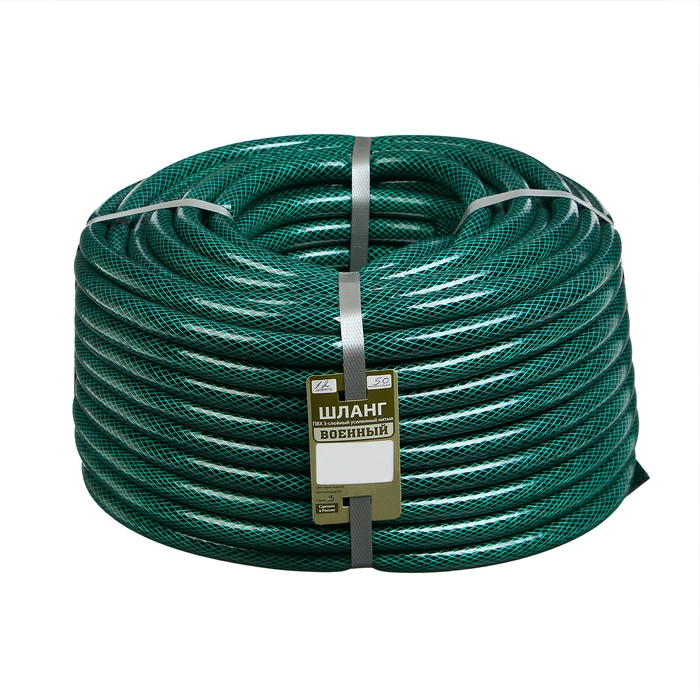 Шланг поливочный, ПВХ, 50 м (1/2"), армированный, «ВОЕННЫЙ»