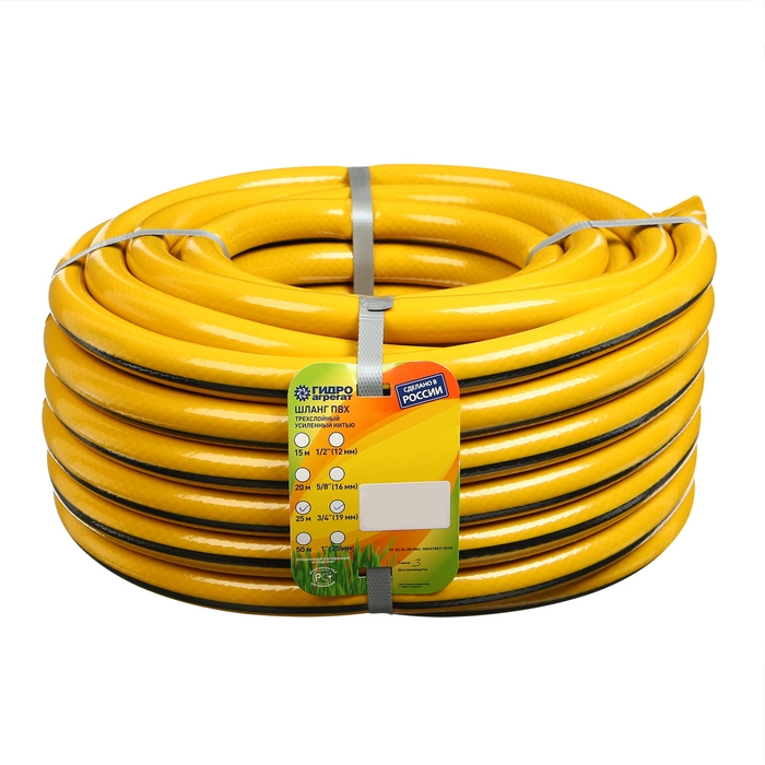 Шланг поливочный, ПВХ, 25 м (3/4"), армированный, жёлтый