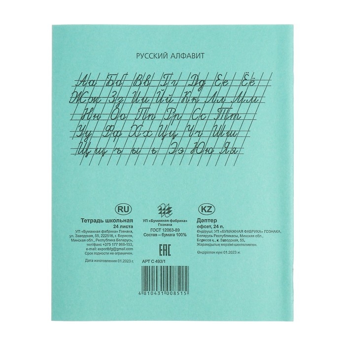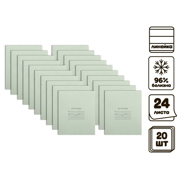 Комплект тетрадей из 20 штук, 24 листа в линию Бумажная фабрика "Зелёная обложка", 60 г/м2, блок офсет, белизна 96%