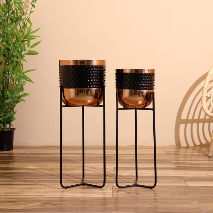 Кашпо на подставке "Слимо" металл (набор 2 шт), диаметр 24 и 19 см