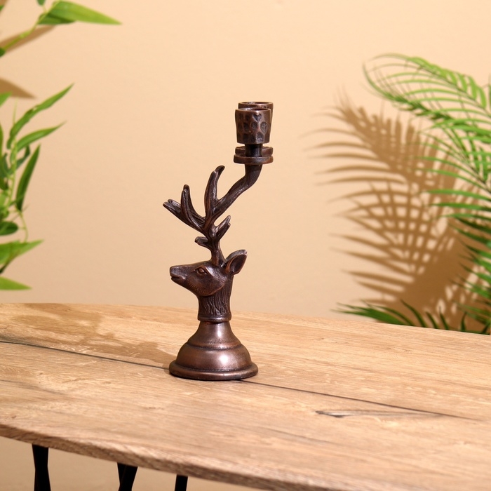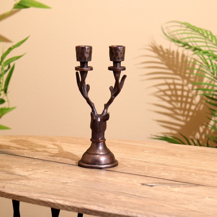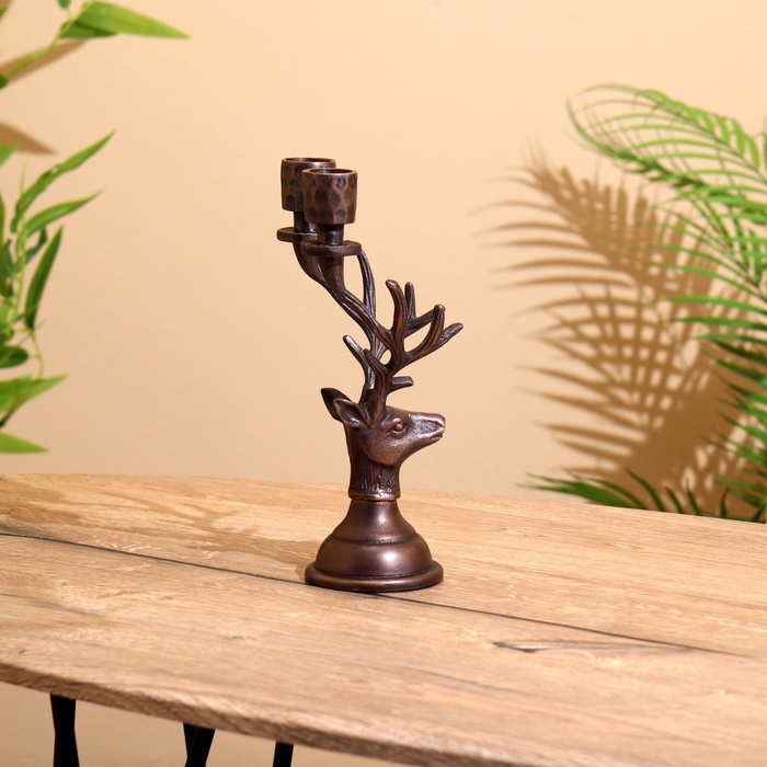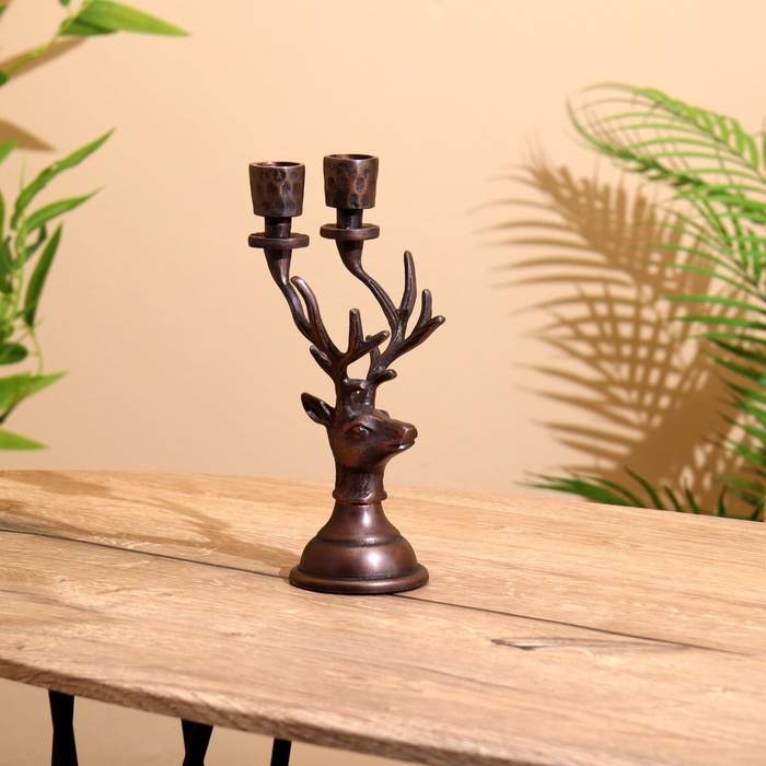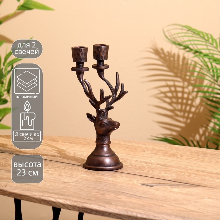 Подсвечник на 2 свечи "Олень" алюминий 11,5х9х23 см