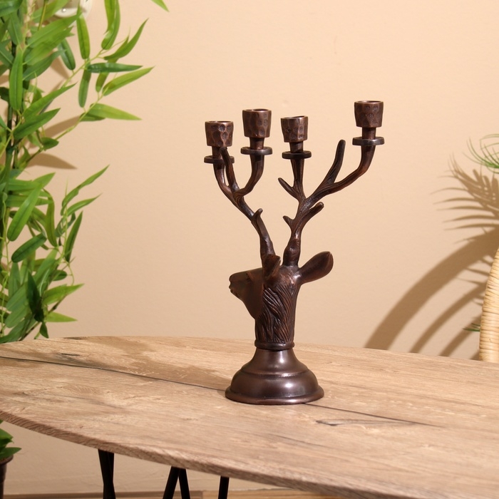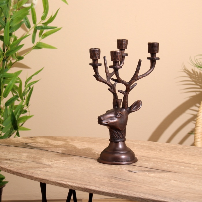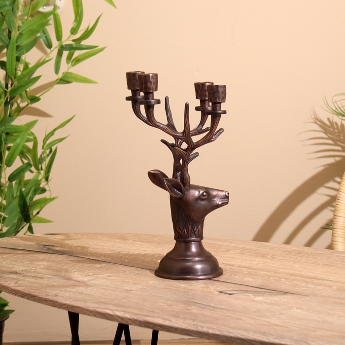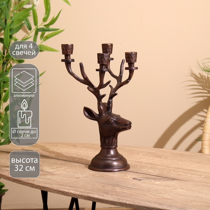 Подсвечник на 4 свечи "Олень" алюминий 16х12х32 см
