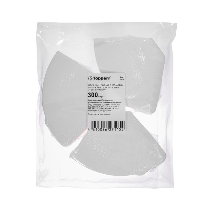 Фильтр бумажный Topperr для кофеварок №4 300шт, отбеленный