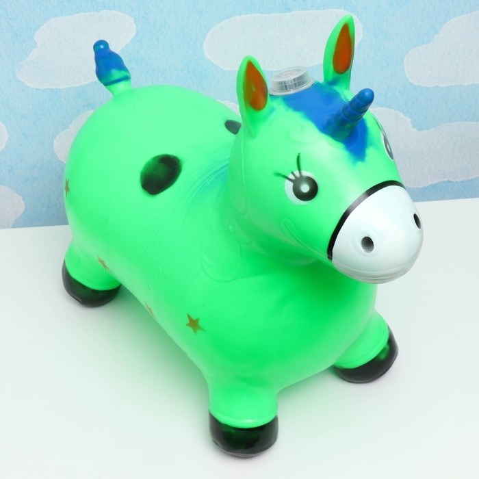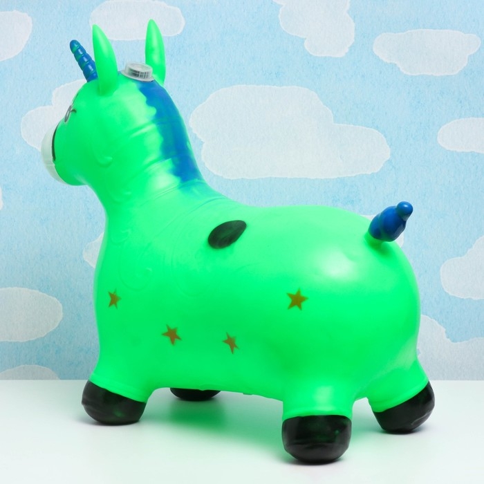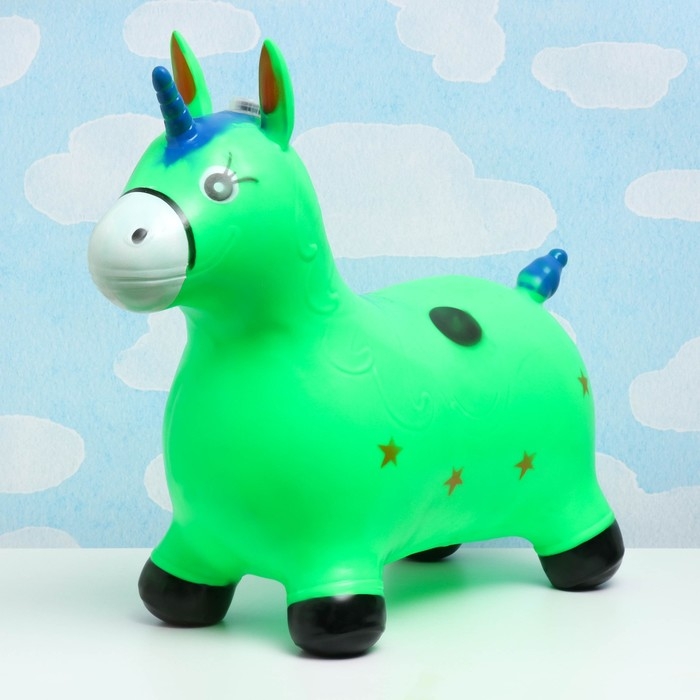Игрушка - прыгун детская "Музыкальный Единорог" резиновая надувная, 50х30см, зеленый