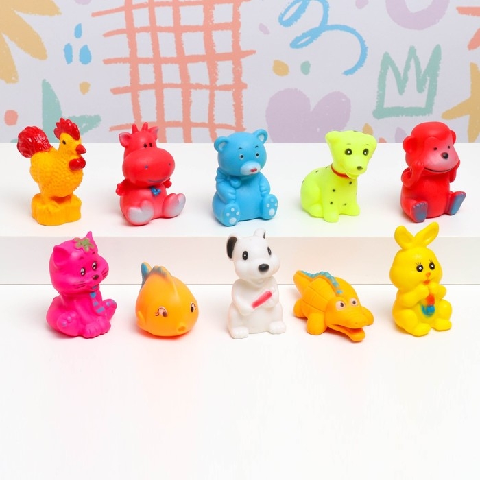 Набор игрушек - пищалок для купания в ванне "Животные" 10 шт, резиновые, 10 см