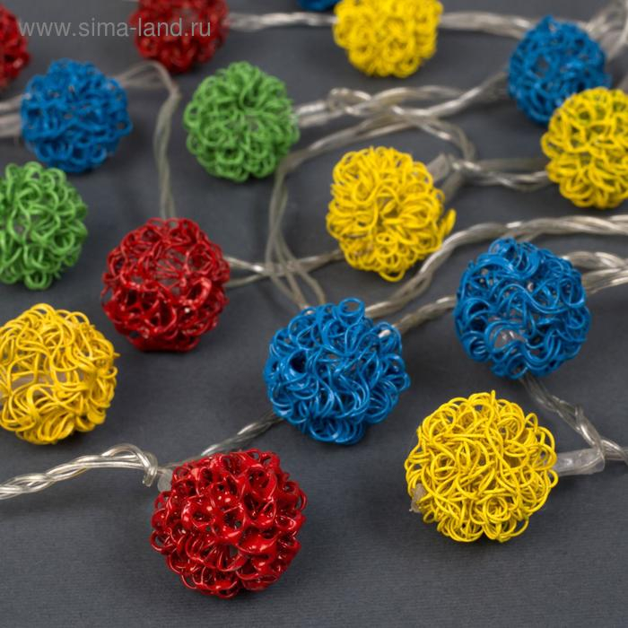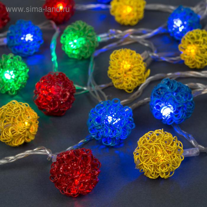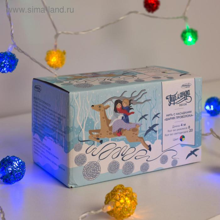 Гирлянда «Нить» 4 м с насадками «Шарик проволока», IP20, прозрачная нить, 20 LED, свечение мульти, 8 режимов, 220 В