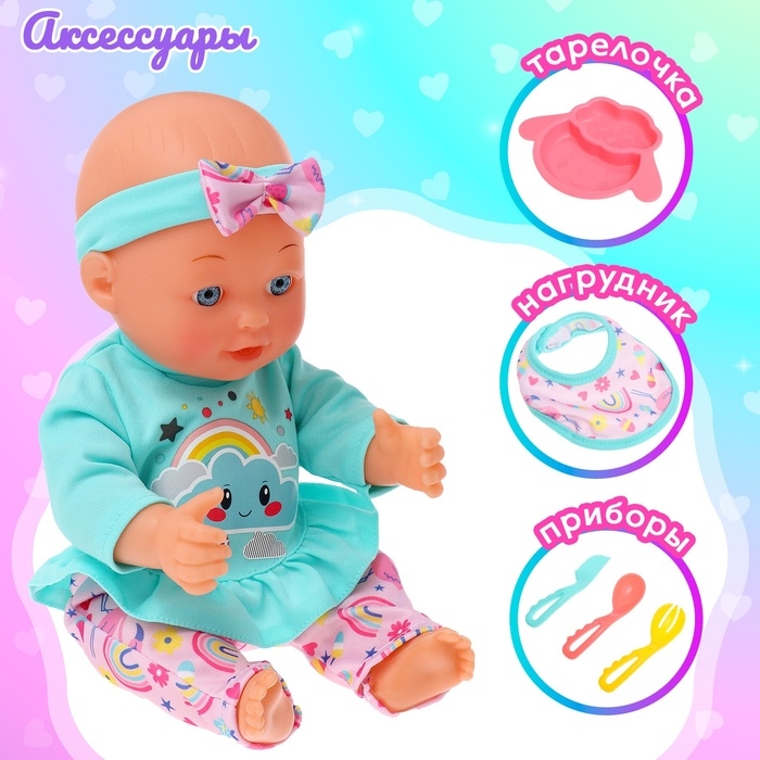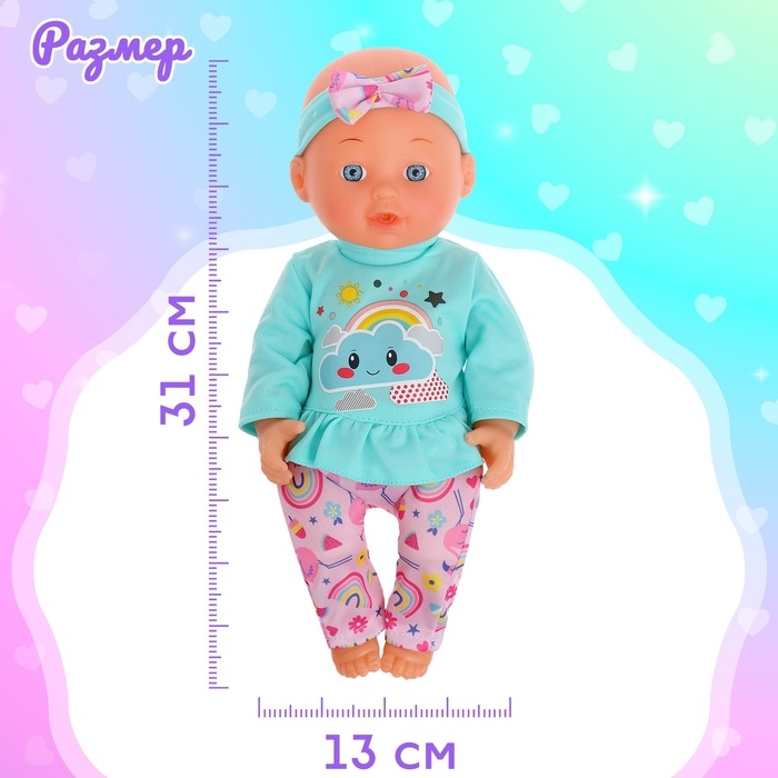 Функциональный пупс «Моя крошка» станет идеальным другом для вашего малыша. Кукла высотой 31 см выполнена из качественного пластика и текстиля и снабжена стильным нарядом с радугой.