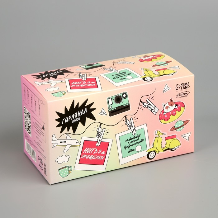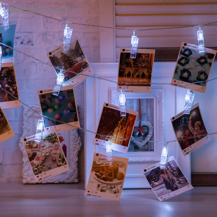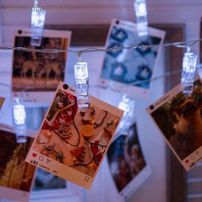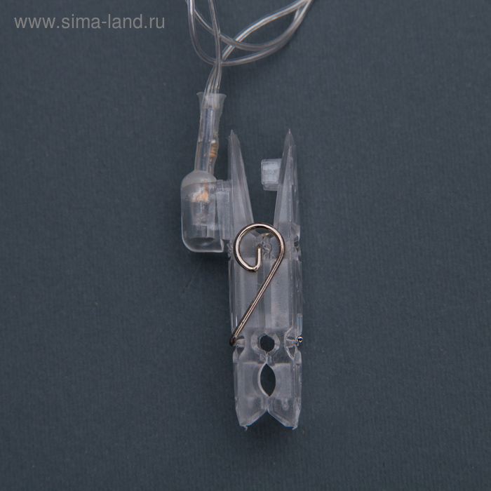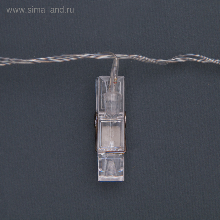 Гирлянда «Нить» 5 м с насадками «Прищепки», IP20, прозрачная нить, 30 LED, свечение белое, 8 режимов, 220 В