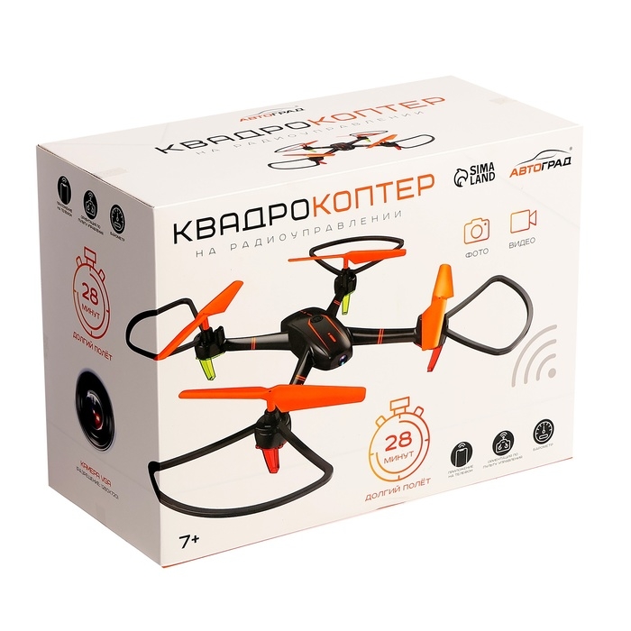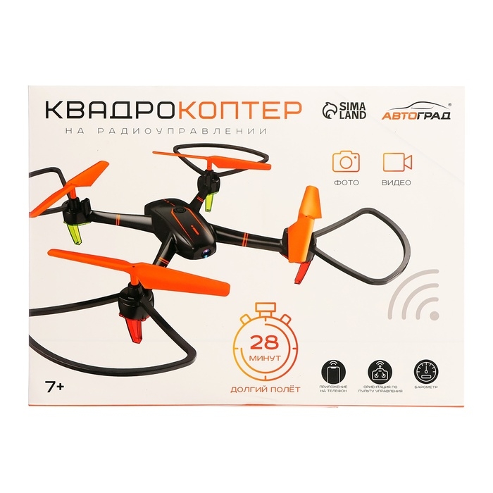 Квадрокоптер на радиоуправлении, время полёта: 28 минут, камера, Wi-Fi, барометр
