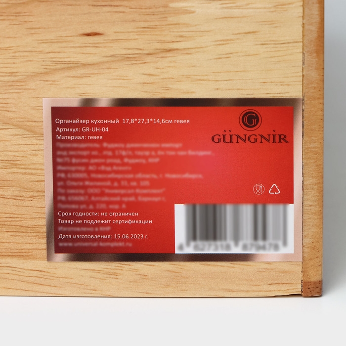 Органайзер деревянный кухонный, подставка под специи 17,8×27,3×14,6 см, гевея