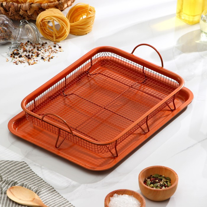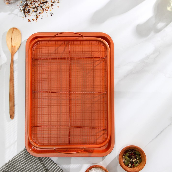 Противень «Прима. Гриль», 35×25 см, с решёткой, антипригарное покрытие, цвет коричневый