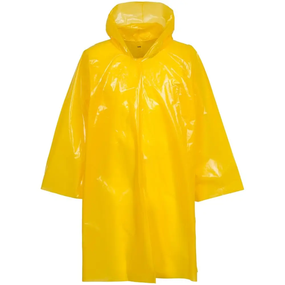 Дождевик-плащ с капюшоном и длинным рукавом из плотного полиэтилена высокого давления (ПВД).