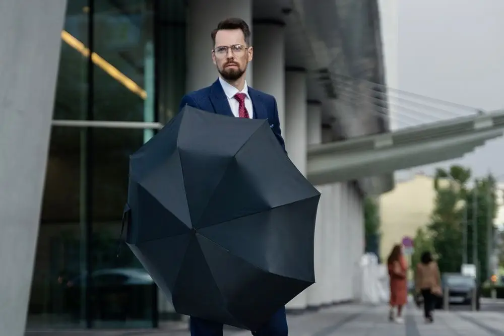 Зонт с куполом из ткани полотняного плетения никого не оставит равнодушным: на наружной стороне явственно заметно сочетание более темной и толстой основной нити и более светлой и тонкой — дополнительной. Плетение добавляет ткани рельефа, и она деликатно и мягко отражает свет.