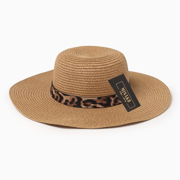 Шляпа женская с леопардовым ремешком MINAKU цвет коричневый, р-р 58
